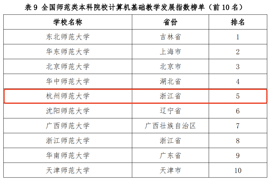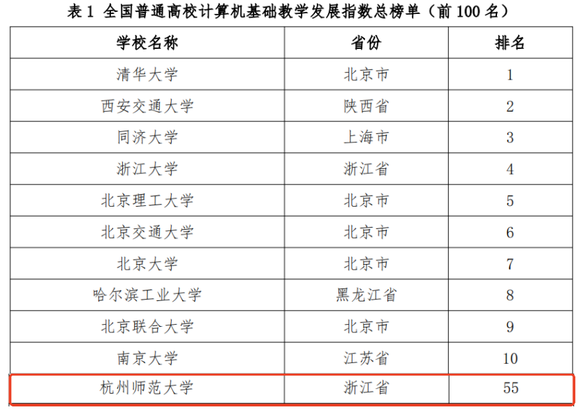 近日,全国普通高校计算机基础教学发展指数(以下简称“指数”)正式发布,这是全国高等院校计算机基础教育研究会(以下简称“研究会”)联合浙大城市学院高等教育数智评价中心和教师教学发展研究国家级虚拟教研室首次发布该指数。值得关注的是,我校位居指数排行榜全国普通高校第55名,在师范类高校排名第5名。