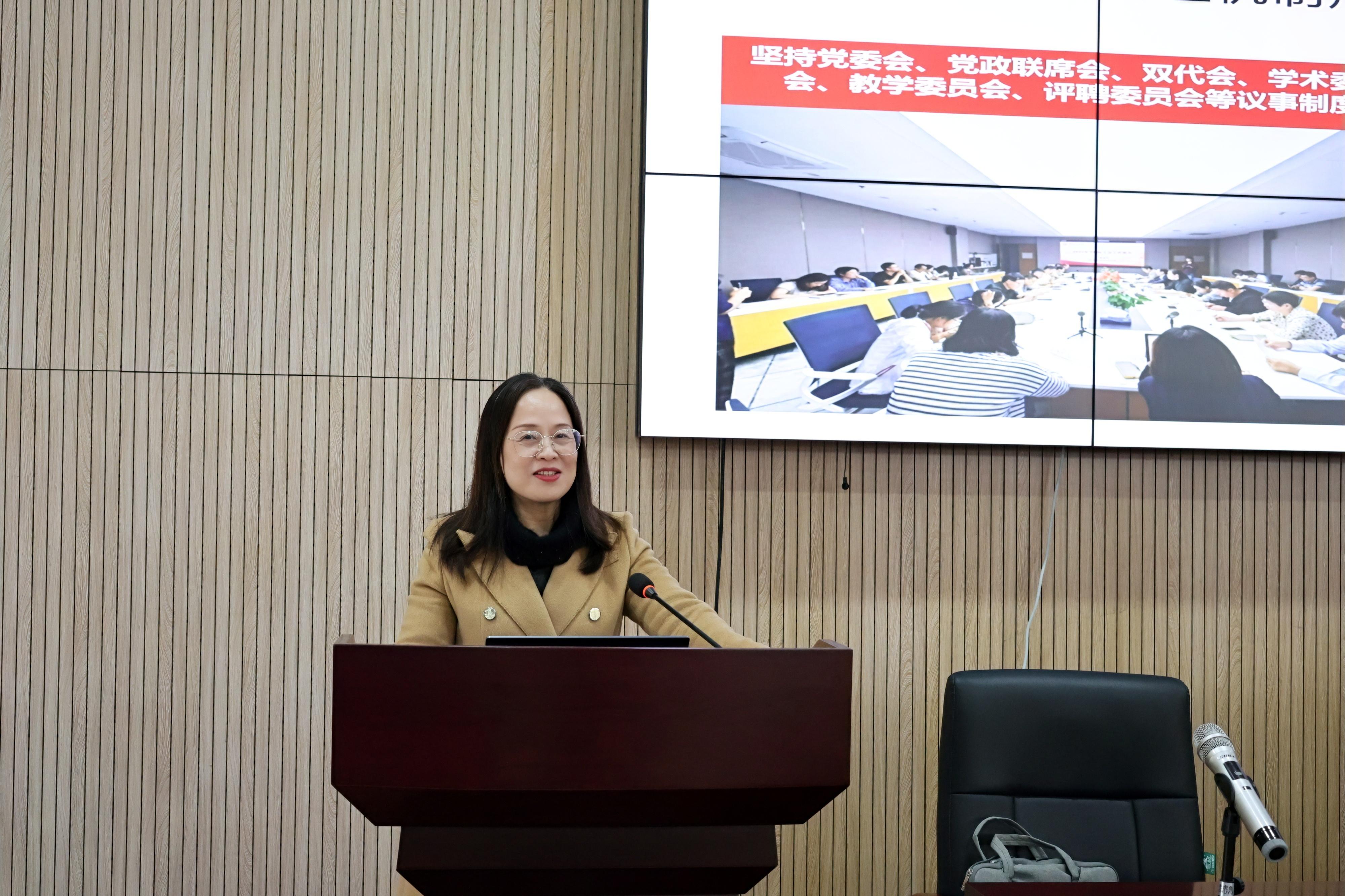 党委书记周春儿代表学院党政班子进行述职。学院积极贯彻学校深入开展"狠抓落实年”和“能力提升年”行动的号召,深化改革,在各方面取得了长足进展:一是推进党建“四个融合”、打造新时代党建品牌;二是对标“双一流”建设、稳健推进学科发展;三是聚焦高质量发展、积极引育高层次人才;四是面向数字经济时代、提升科研创新水平;五是担当有为抓落实、立德树人提质量;六是服务杭州见成效、数字中国谋新篇。学院未来将为完成“十四五”规划目标和学校争创国家“双一流”而不懈努力。