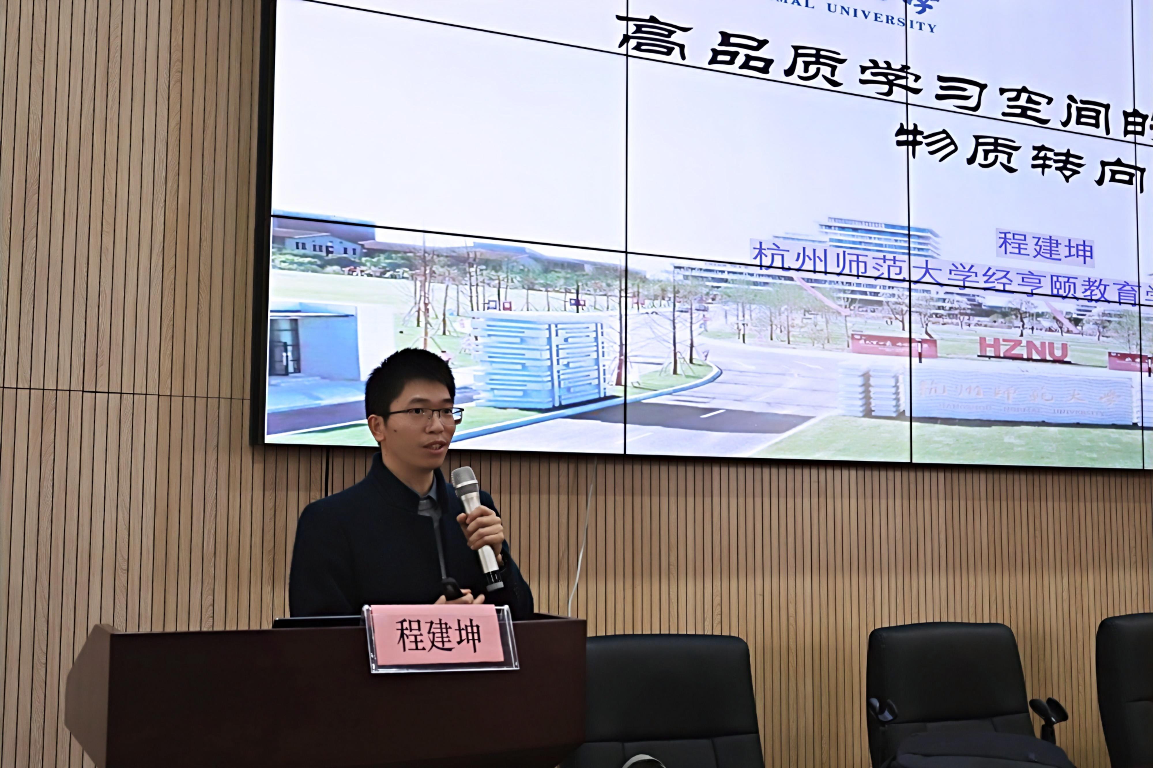 此次会议,学院还邀请了经亨颐教育学院学术副院长、副教授程建坤作题为《高品质学习空间的构建的物质转向》专题宣讲。程教授深入探讨 “学习空间是什么” 这一基础概念后,聚焦学习空间建构物质转向及其现实意义,从新物质主义视角剖析学习空间本质,最后提出高品质学习空间的构建策略,为在场听众带来关于学习空间的全新思考与见解 。