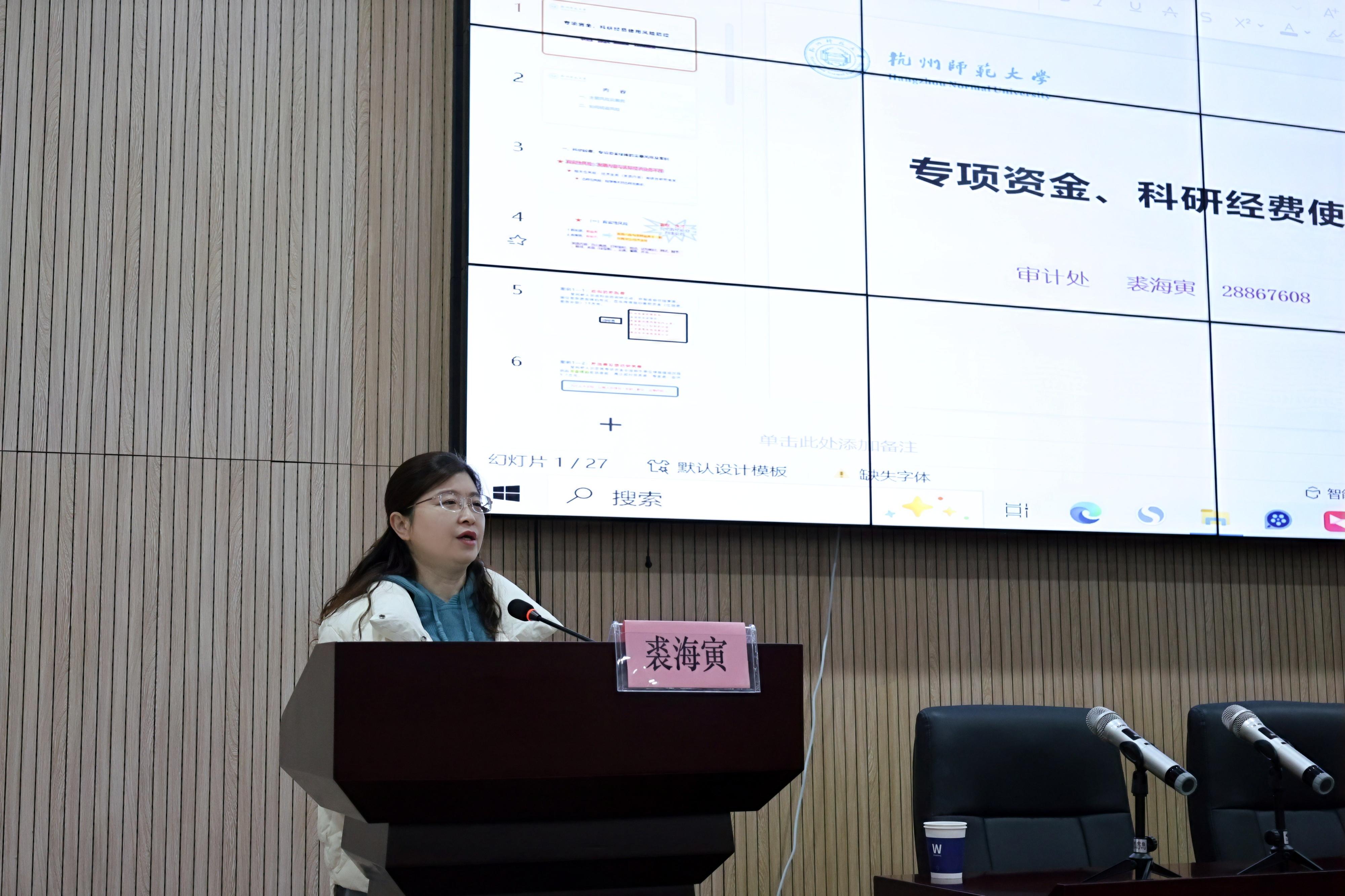 会上,学院邀请了校纪委委员、审计处处长裘海寅围绕科研经费与专项资金使用风险防范进行专题报告解读。分析讨论了科研经费和专项资金在使用过程中存在的各种主客观风险,并通过反面案例强调了规范报销行为的重要性,鼓励教师进行自查自纠,以实现风险的有效防控。