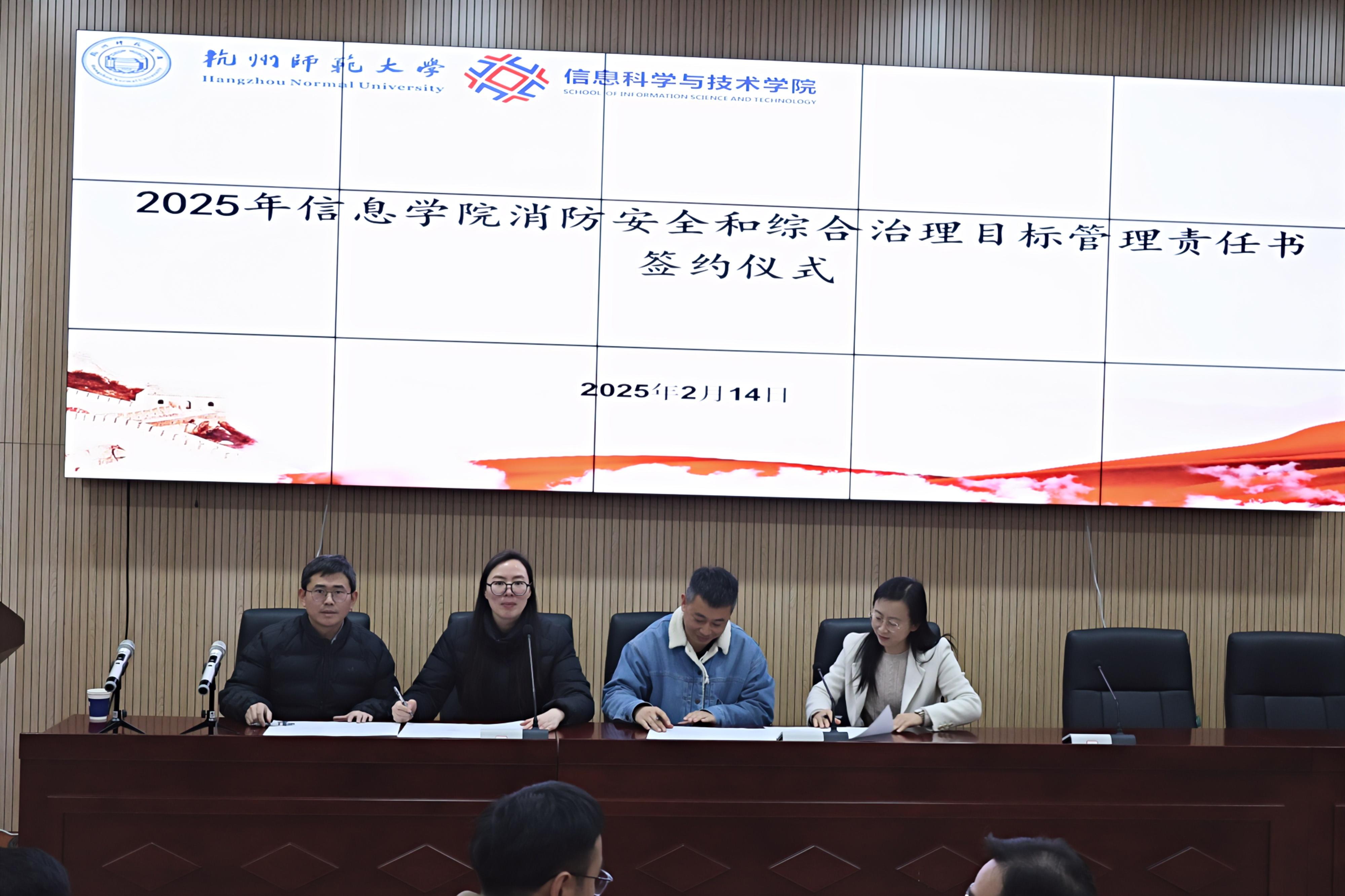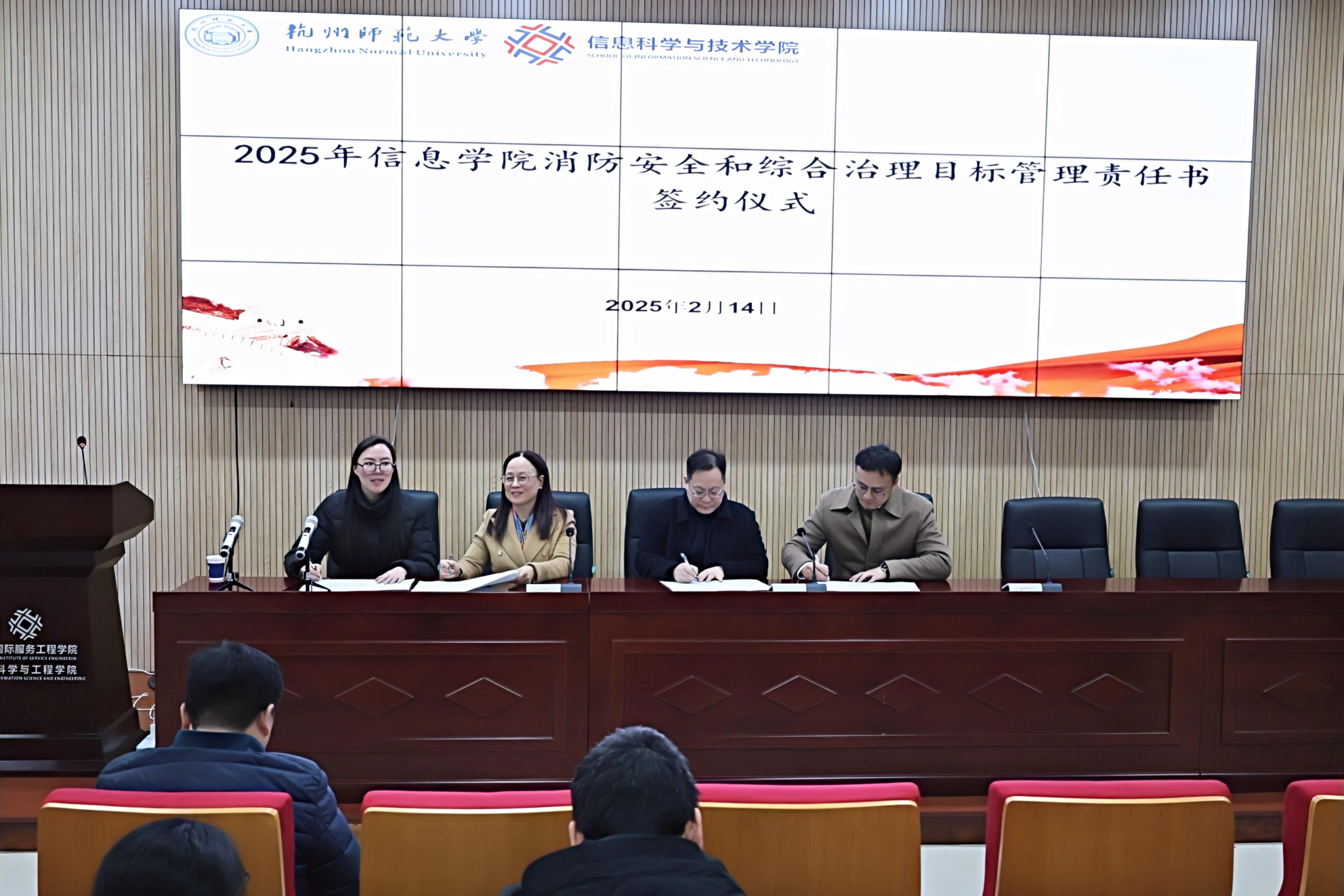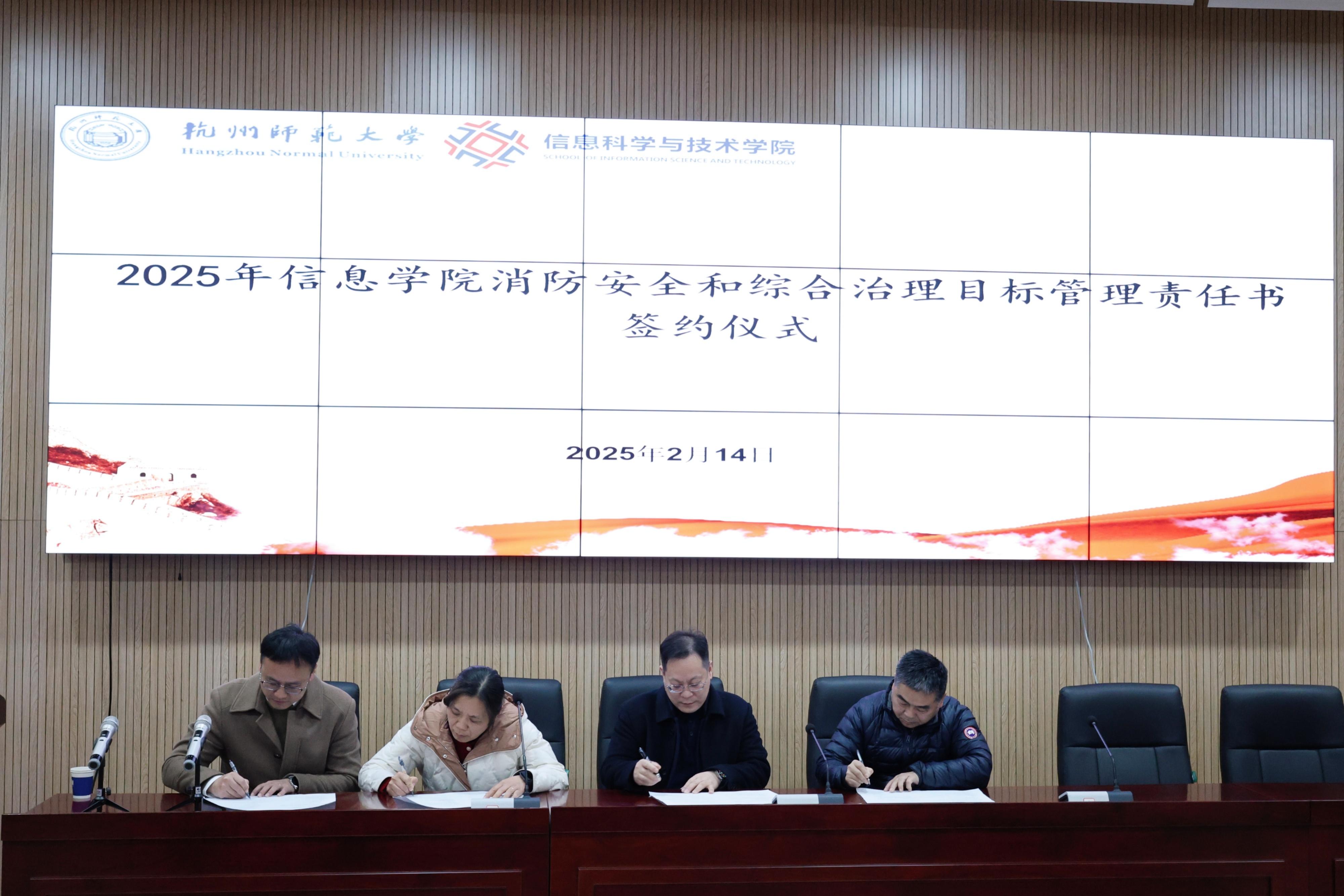 此外,学院相关领导和部门负责人就消防安全和综合治理目标管理进行责任书的签订。