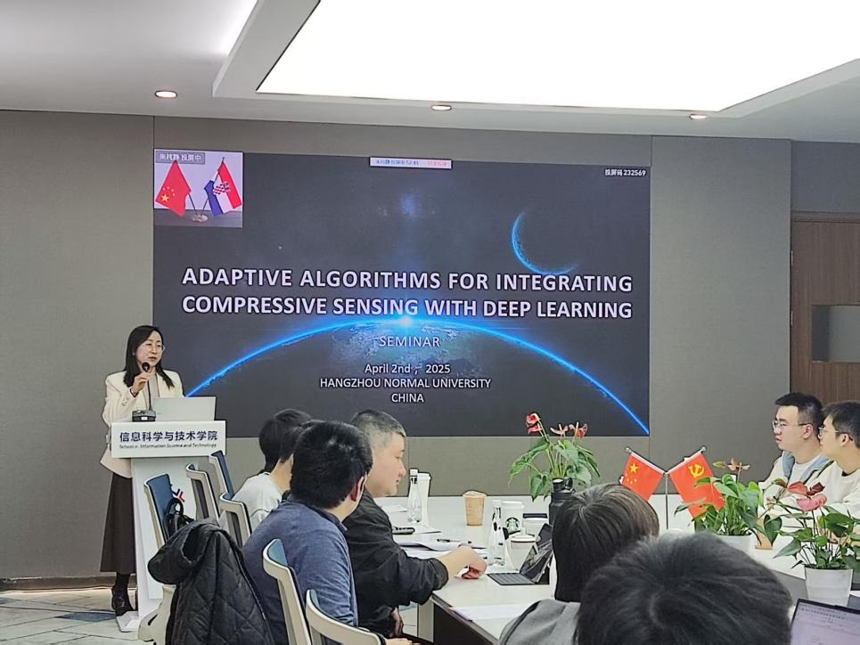 2025年4月2日下午,换妻 在勤12-304举办“自适应算法:压缩感知与深度学习融合”学术研讨会,采用“专家报告+研究生学术汇报”的形式,旨在促进学术交流与跨领域合作。本次研讨会特邀浙江工业大学李胜副教授、克罗地亚里耶卡大学研究人员Stella Dumenčić和Boris Gašparović作专题报告,同时换妻 研究生也汇报了最新研究成果。本次研讨会由换妻 副院长李秀梅教授主持,吸引了学院众多研究生及青年教师参与,现场学术氛围浓厚,交流热烈。