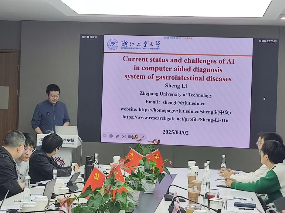 研讨会伊始,李胜副教授作了题为《Current status and challenges of AI in computer aided diagnosis system of gastrointestinal diseases》的专题报告。在报告中,他系统阐述了其科研团队在无线胶囊内镜技术领域取得的重要进展,重点展示了团队在小肠息肉智能检测方面的创新性研究成果,并对当前人工智能辅助诊断系统在胃肠疾病领域的发展现状与面临挑战进行了深入剖析。