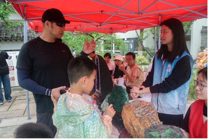 “自然瑰宝・矿物化石展览”里,志愿者团队以深入浅出地讲解,揭开矿物形成的奥秘。他们介绍形态各异的矿物化石和精美矿石饰品,展现大自然的鬼斧神工与人类艺术的巧妙结合。