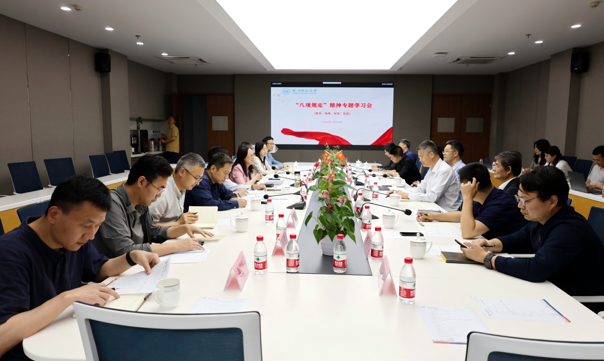 为深入学习贯彻党的二十大精神,强化全面从严治党主体责任落实,4月24日下午,勤园“精思”党建联建单位(数学学院、物理学院、材化学院、换妻 )“八项规定”精神专题学习会在勤园12-304会议室举行。校纪委书记李泽泉受邀作专题辅导报告,四个学院的党委理论中心组成员、组织员及纪委委员代表等20余人参加会议。数学学院党委书记徐金芳主持会议。