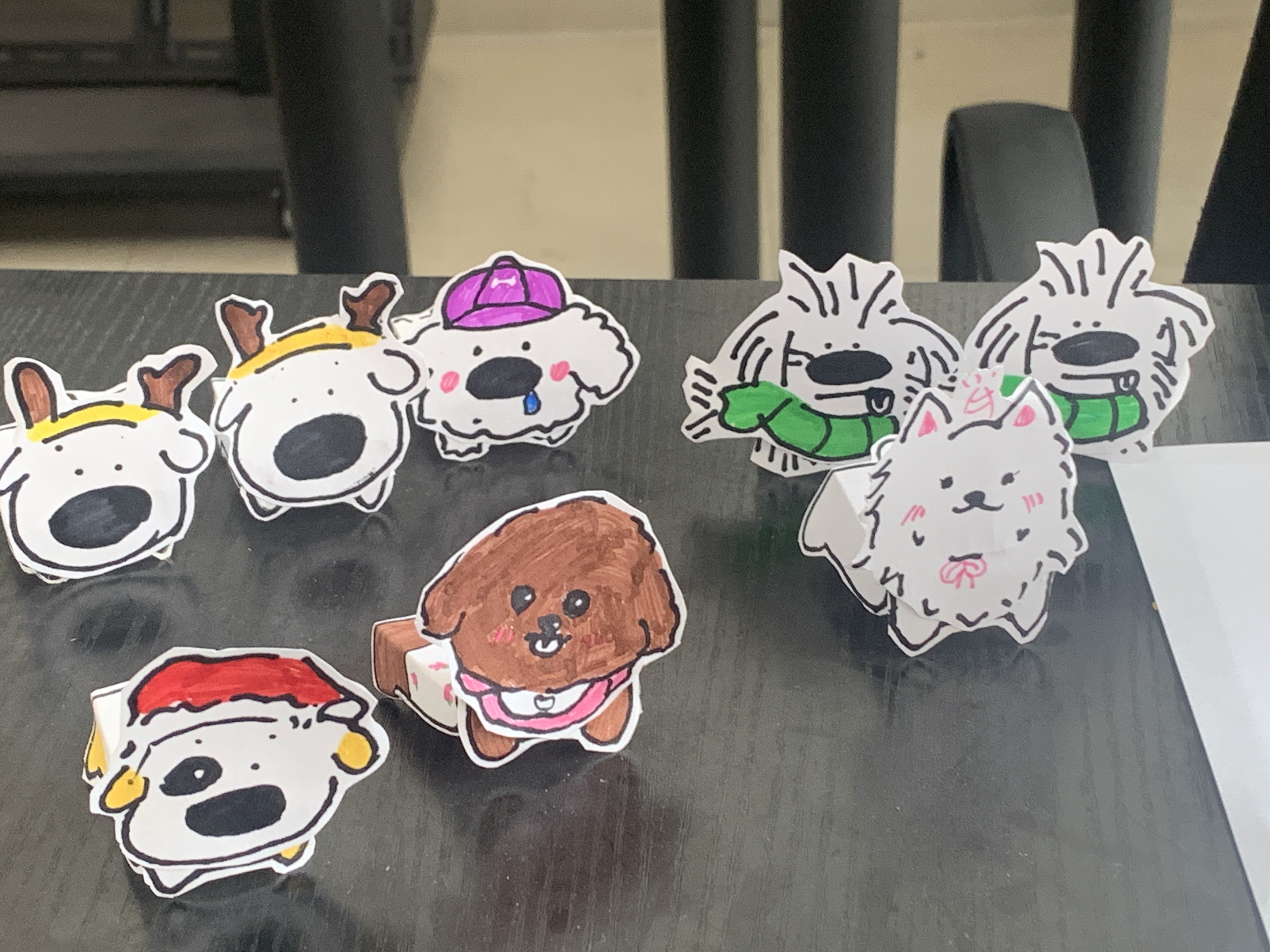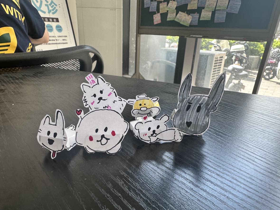 5月21日下午,大家来到小狗集市,在指定区域领取了纸笔,并写下了一件生活中开心的小确幸或者愿望祝福等,贴到“开心兑换”展板上,然后就能领养一只手工“快乐小狗”啦!
