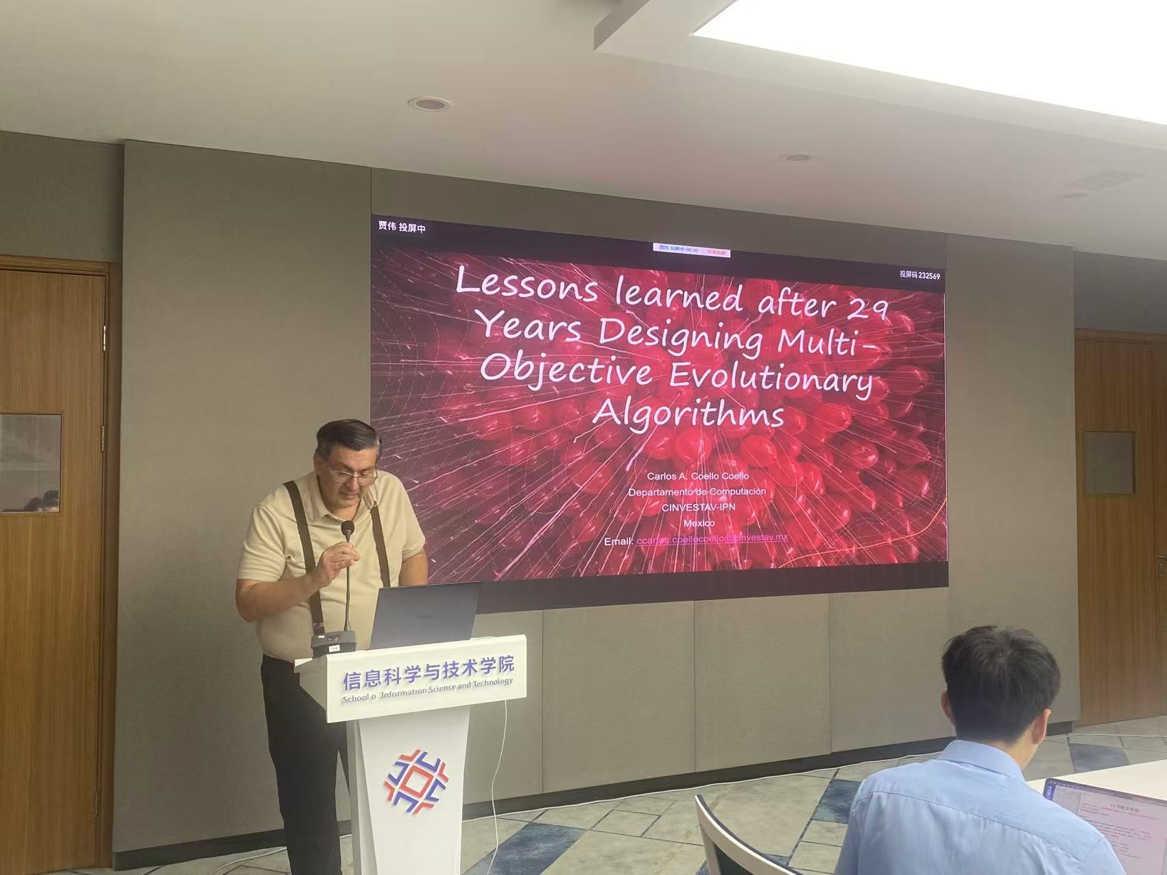 2025年6月10日下午3点,第8期IT讲坛在勤园12-304如期举行。来自墨西哥Cinvestav研究中心的著名学者Carlos Artemio Coello Coello教授应邀做了题为“Lessons Learned after 29 Years Designing Multi-Objective Evolutionary Algorithms”的精彩报告。众多师生到场聆听,现场座无虚席、互动踊跃。