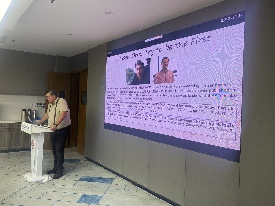 教授强调科研中“率先突破”的重要性。他回顾了团队在2001年开发出首个用于多目标优化的微遗传算法的经历,并介绍了他们提出的MOPSO算法作为第一个在权威期刊发表的多目标粒子群优化方法,奠定了团队在该领域的国际影响力。