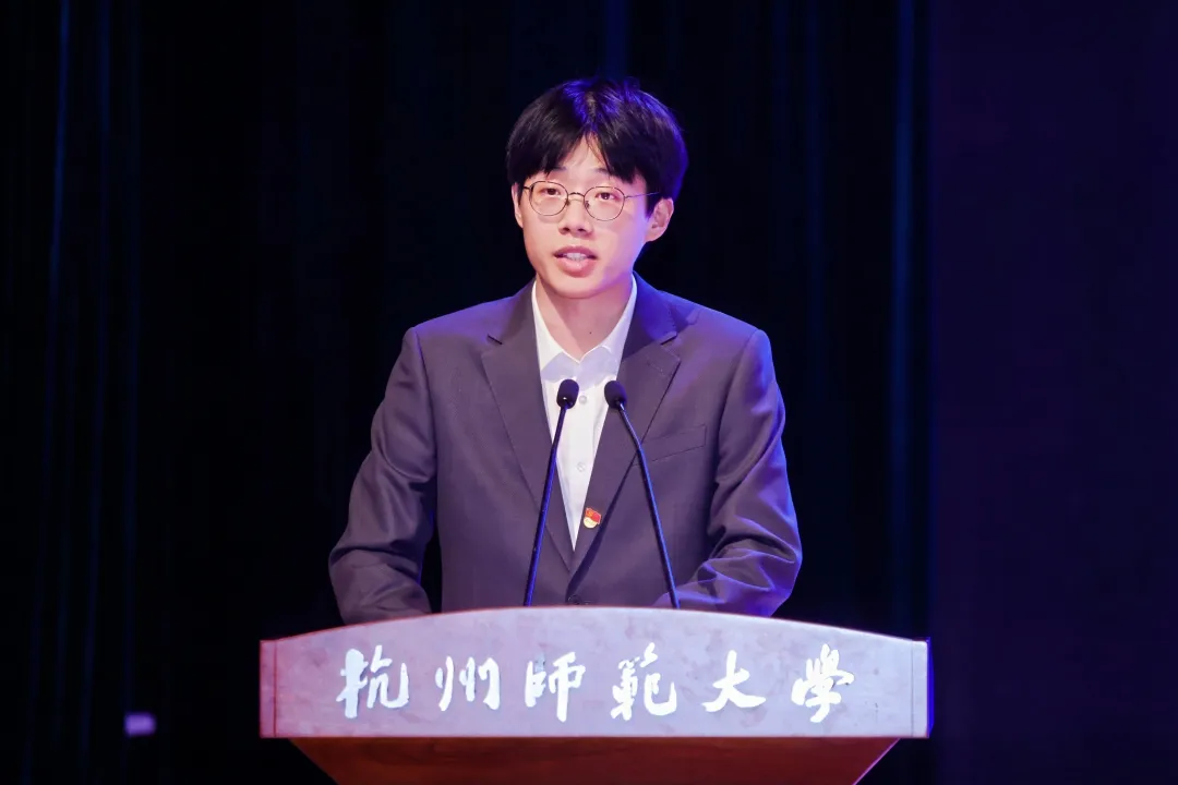 她回顾同学们在师大求学的岁月,与时代同频,与学院共发展。用青春热血、智慧汗水与全院师生齐心协力,砥砺奋进,助推学院在党建思政、人才培养、科学研究、社会服务、创新创业等各方面取得丰硕成果。她特别提到,2025届毕业生在校期间亲历建党百年、共青团百年华诞、党的二十大等重要时刻,以“小青荷”志愿者、演职人员等身份服务杭州亚运会,在疫情防控中彰显担当,在学科竞赛等赛事中屡创佳绩,荣誉与成绩不仅成为个人青春岁月的珍贵印记,更让学院熠熠生辉,也为学弟学妹树立榜样照亮前行的路。