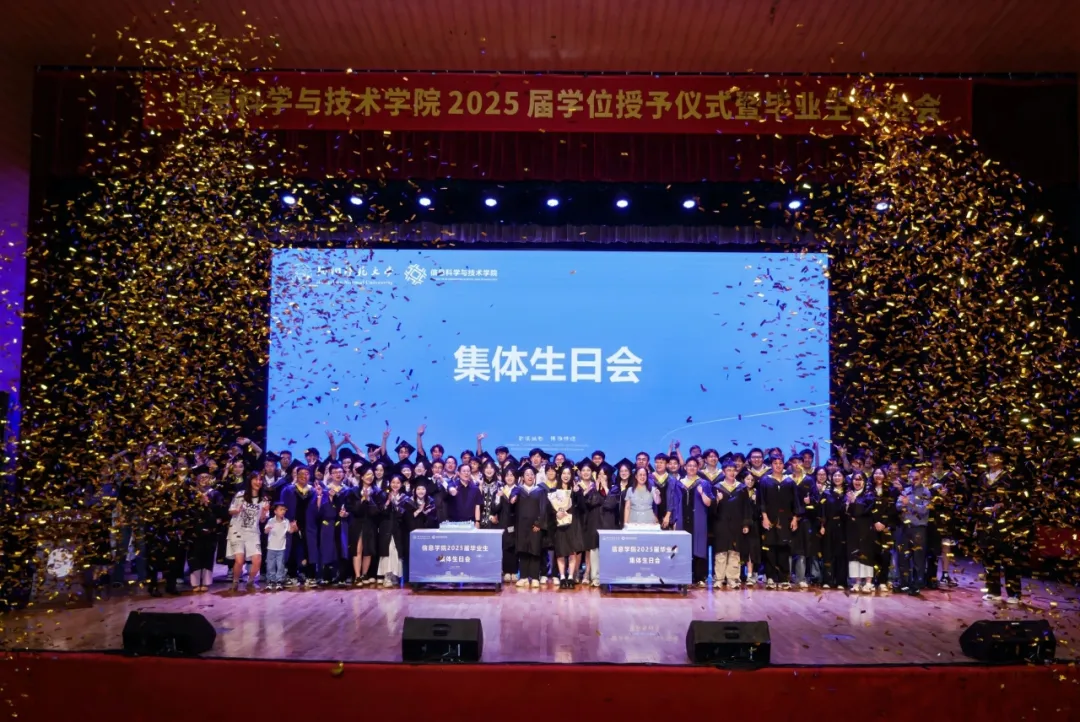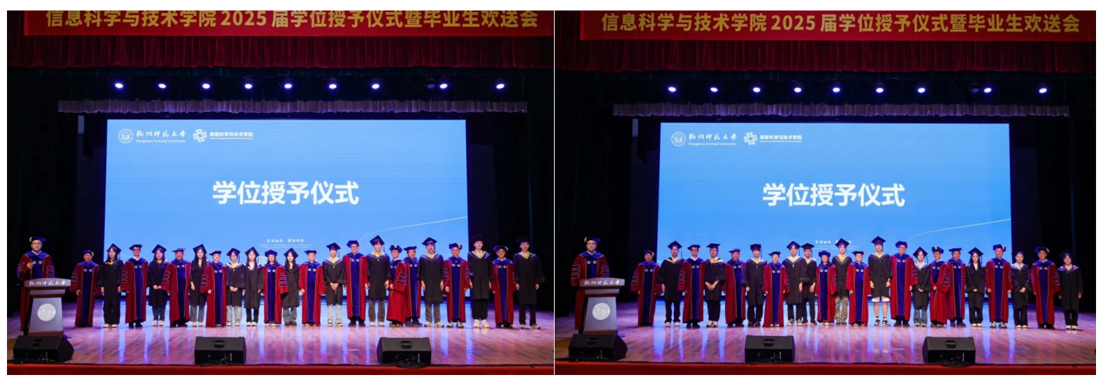 仪式的最后,毕业生们依次上台,接受师长为他们拨正流苏。相机定格下他们欢乐的瞬间,背景屏幕上循环播放着那句留言:“你的人生代码已编译完成,点击‘运行’,去书写属于自己的算法吧!” 毕业不是终点,而是新的编译起点。愿2025届毕业生以信息为舟,载着母校的祝福,在数字时代的汪洋中,驶向属于自己的星辰大海。