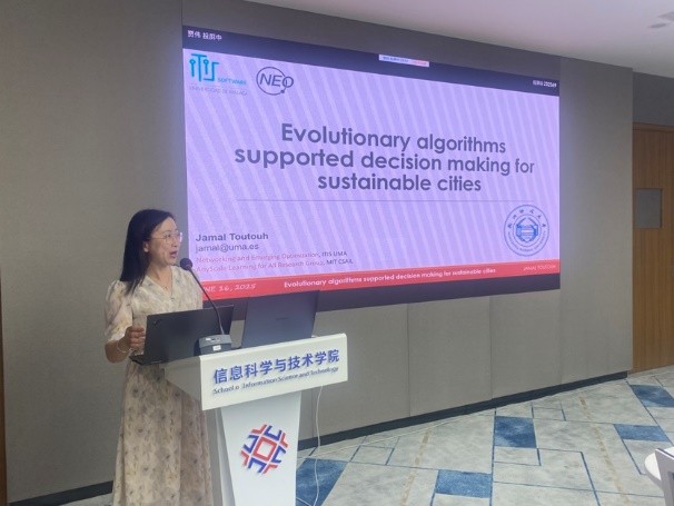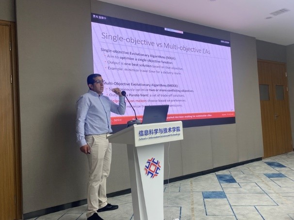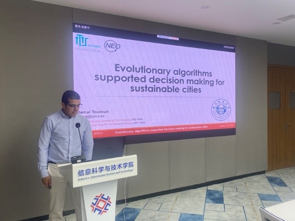 2025年6月16日下午2点,第9期IT讲坛在勤园12-304举行。西班牙Málaga大学终身教授、MIT研究员Jamal Toutouh应邀做题为“Evolutionary Algorithms Supported Decision-Making for Sustainable Cities”的精彩报告。学院李秀梅副院长主持讲座,计算机系主任盛伟国教授等与会,研究生积极参与。