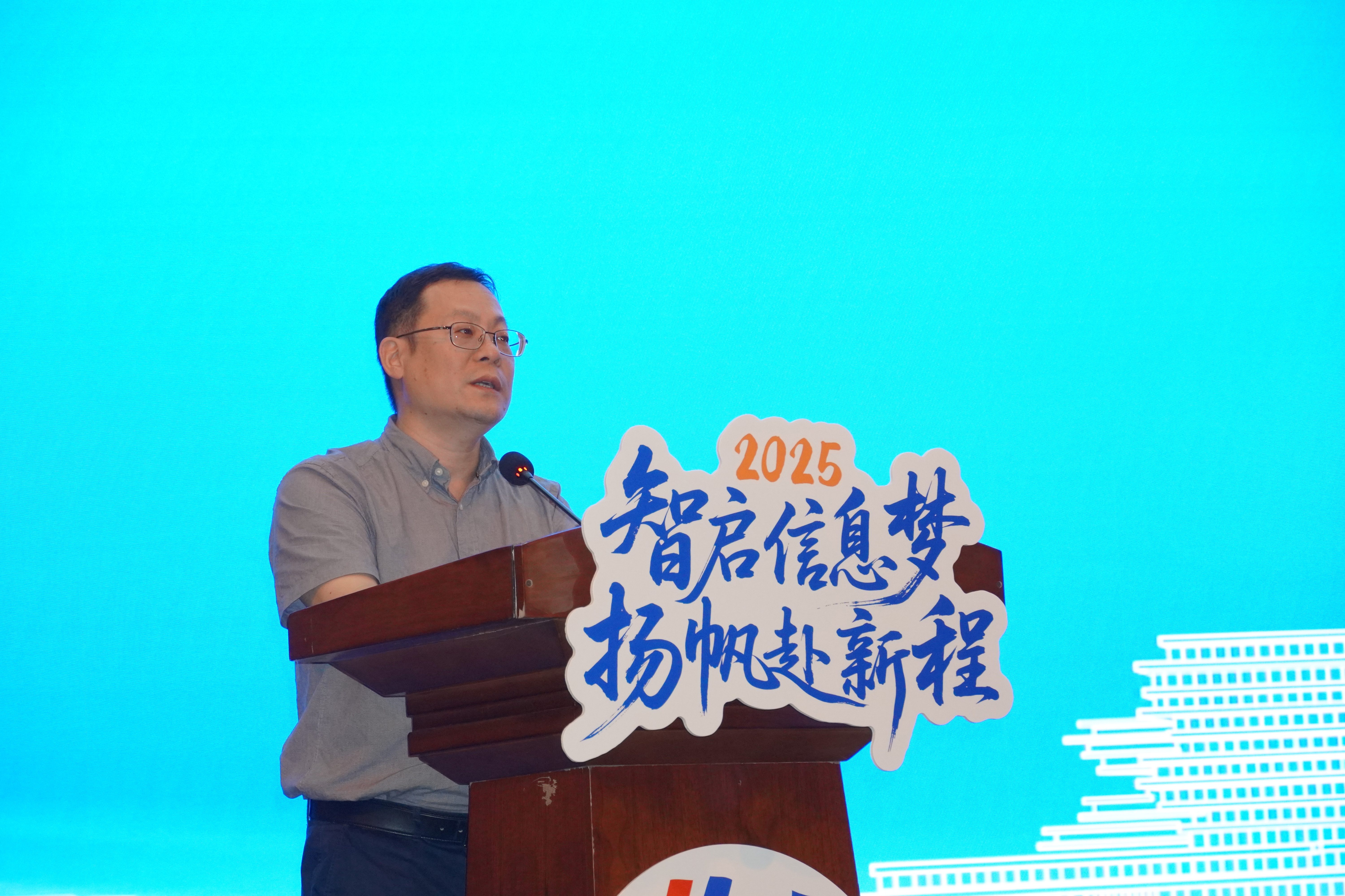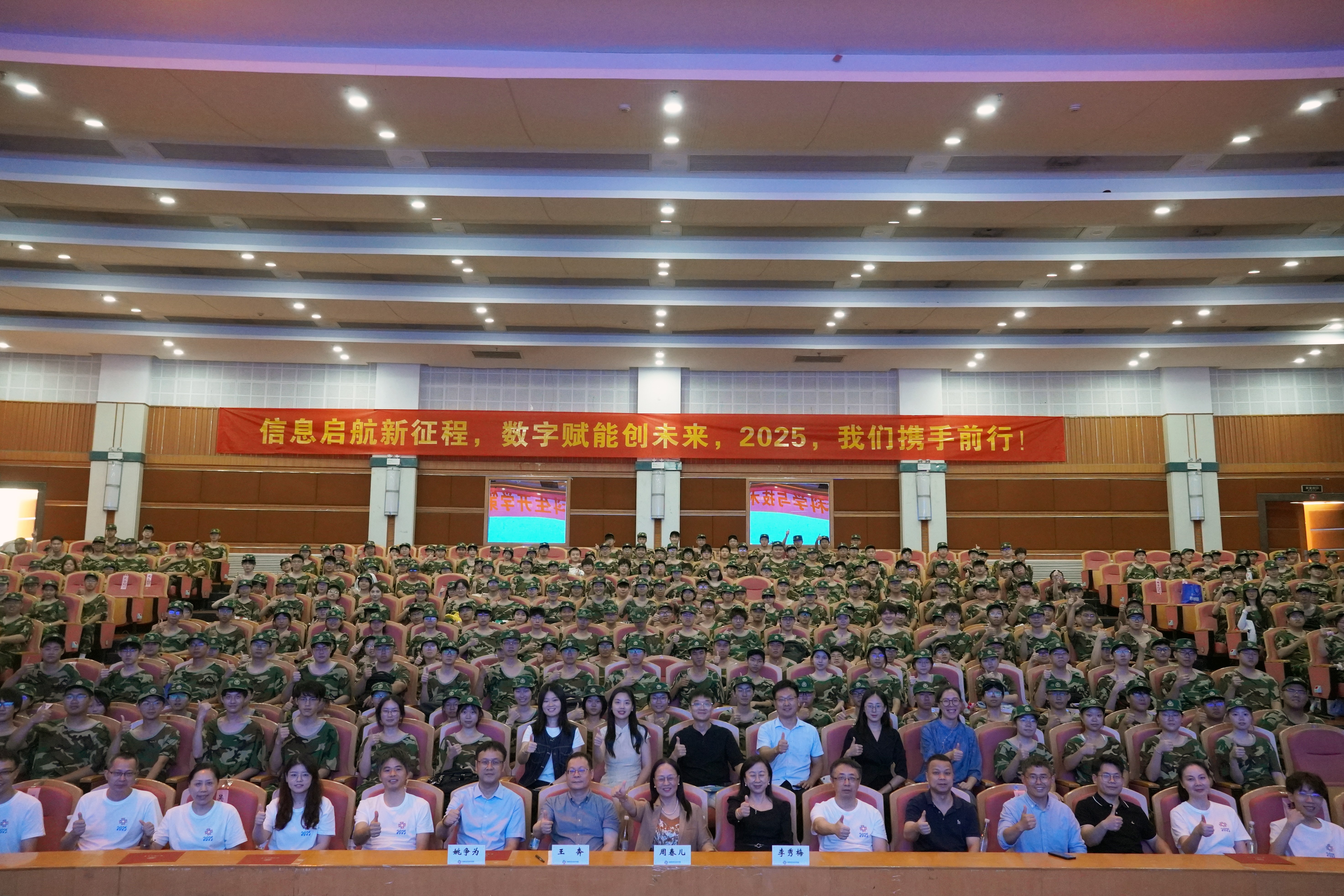 国歌奏毕,院长王奔上台致辞。他向新生们介绍了学院的发展历程、学科优势以及未来的发展方向,鼓励同学们在大学期间既要夯实专业基础,又要勇于探索前沿科技,将个人成长融入时代发展的浪潮中,在信息科学领域绽放光彩。
