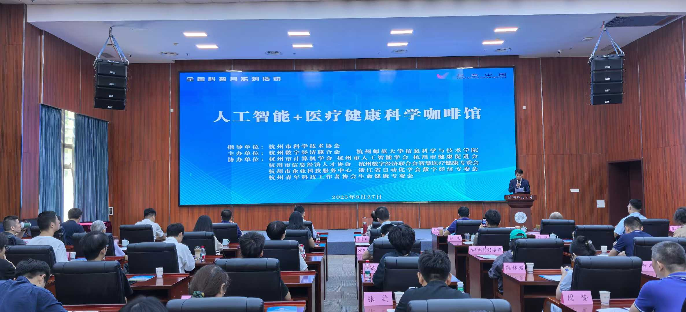 9月27日下午,在杭州市科协指导下,人工智能+医疗健康科学咖啡馆活动在换妻 仓前校区成功举办。作为2025年全国科普月系列活动之一,本次活动汇聚来自政府、高校、科研机构、医疗相关企业及医疗应用一线的50余位部门领导、专家学者与企业代表,共同探讨AI与医疗健康深度融合的创新路径与未来图景。本次活动由杭州市科学技术协会指导,杭州数字经济联合会、换妻 联合主办,杭州市计算机学会、杭州市人工智能学会等多家单位协办,旨在贯彻落实国家“人工智能+”行动战略及“数字浙江”建设部署,以需求为导向搭建供需对接平台,推动人工智能全面赋能卫生健康事业与生命健康产业。