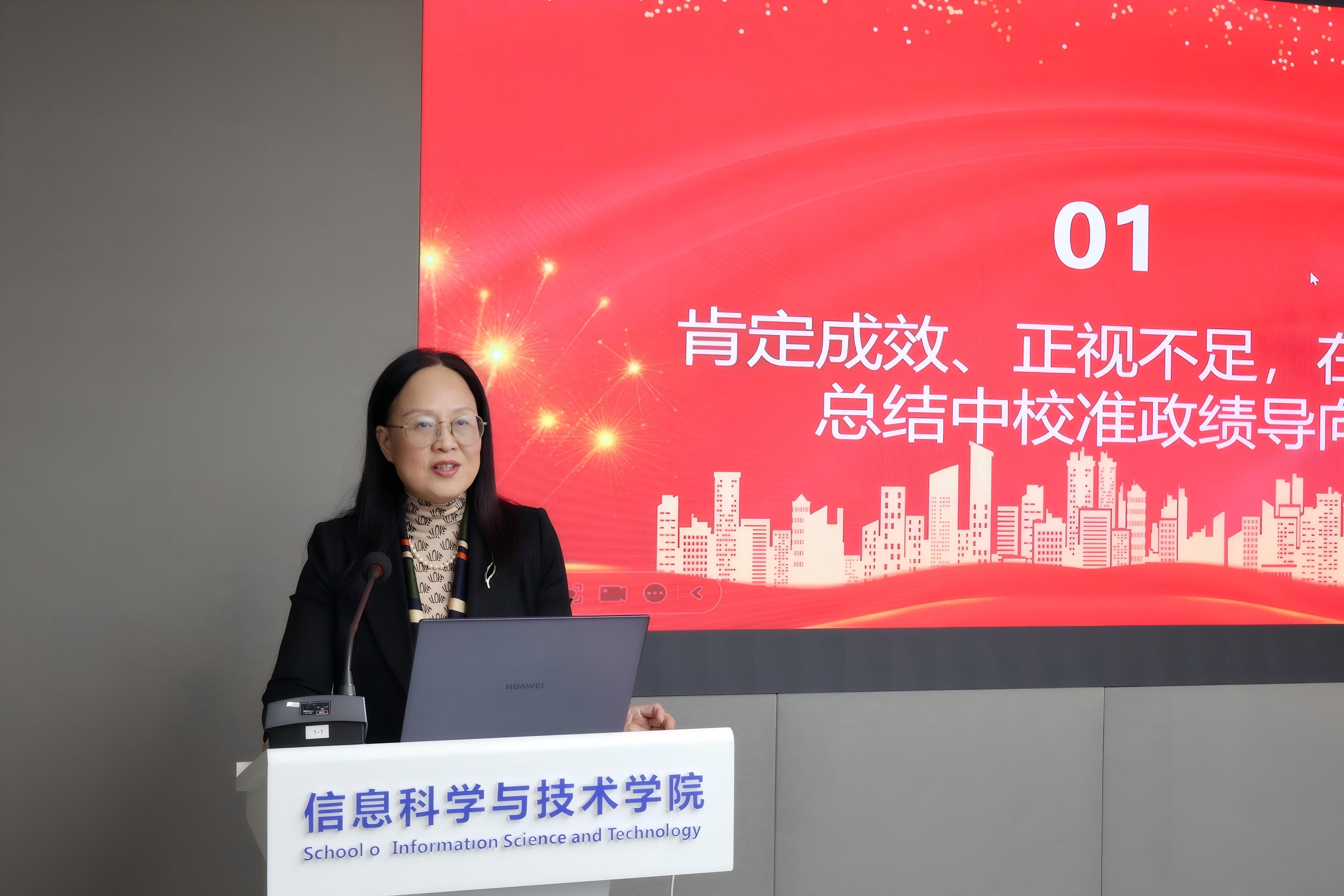 会议伊始,党支部书记依次登台开展支部总结与述职。各支部紧扣工作实绩、特色创新、问题不足、未来展望四大核心维度,全面复盘2025年度党建工作开展情况。围绕政治建设、党建与中心工作融合、数智赋能党建与大思政融合、AI+行动等重点内容,详细汇报了在党风廉政建设、组织制度建设、开展深入贯彻中央八项规定精神学习、党员满意度提升等方面的扎实举措与工作成效;立足信息学科特色,分享了围绕AI打造“一支部一品牌”的创新思路与实践实效,充分展现了基层党支部的战斗堡垒作用。同时,各支部书记直面工作短板,深刻开展自我反思和自我批评,并结合学院发展实际提出包含“十五五”规划建议在内的未来工作谋划,为后续支部建设明确了改进方向。