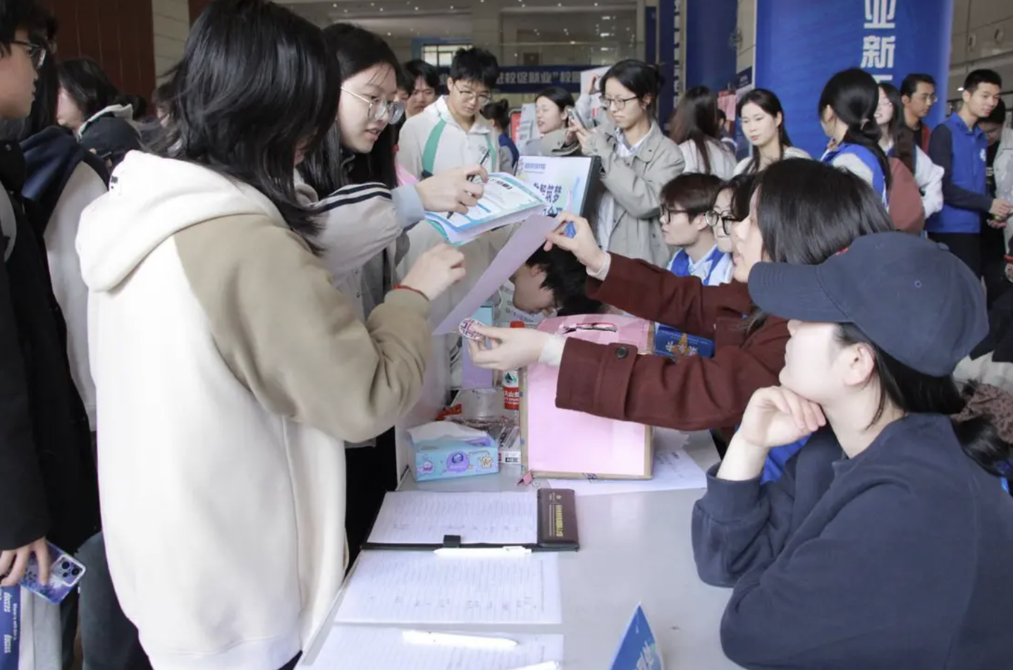 为进一步提升求职对接效率,本场招聘会在往届“AI面试官”“数字求职机”的基础上,全新升级智能招聘服务体系,现场配备3台智能招聘机,实现岗位信息一键浏览、简历快速投递、匹配度实时查询,学生只需简单操作,就能快速定位适配岗位,告别求职信息差。“刷脸就能查看岗位匹配度,不用一个个展位跑着问,几分钟就找到了几个符合自己求职意向的岗位,太方便了!”软件工程专业大三学生小郑体验完智能招聘机后说道。智能招聘设备凭借便捷、高效的特点,成为现场学子的“求职好帮手”,让选岗、求职的流程更简洁、更高效。