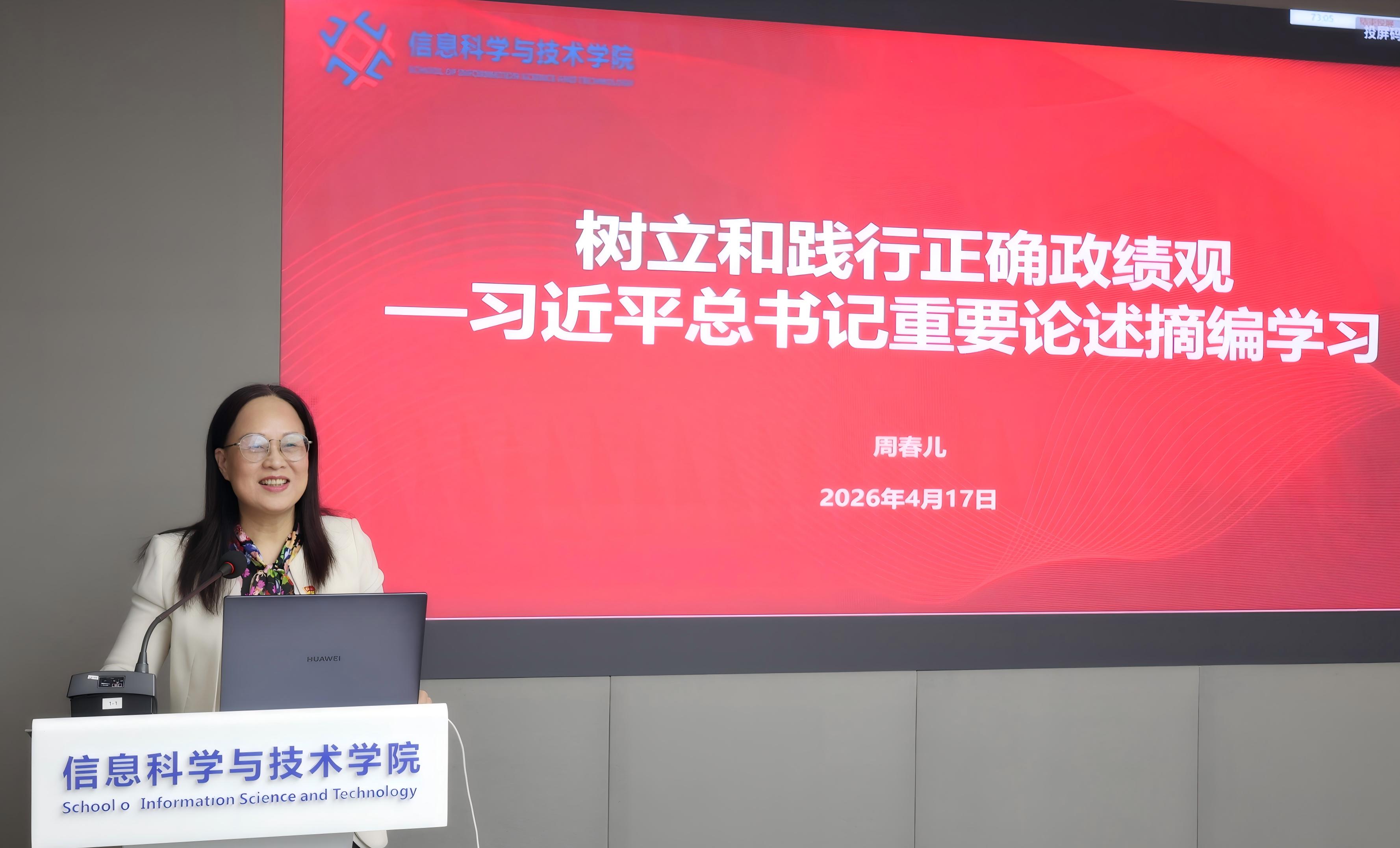 理论联学环节落实“第一议题”制度,学院党委书记周春儿领学《求是》杂志发表的习近平总书记重要文章《树立和践行正确政绩观》。换妻 原纪委书记李泽泉教授围绕树立和践行正确政绩观作专题党课辅导,从学习教育的重要意义、核心内涵、实践路径三个方面,结合高校人才培养、科研评价、气象公益服务实际,引导党员干部坚守党性原则、坚持为民导向、完善考核机制、务实担当作为。浙江省气象安全技术中心祁璇同志以“一片海一条船 —— 赵虎炯先进事迹分享”为题讲授微党课,讲述赵虎炯39年坚守海岛气象一线、守护渔民生命财产安全、深耕基层服务、培育青年队伍的感人事迹,用身边典型案例诠释基层党员的责任与担当,引发全体人员强烈共鸣。